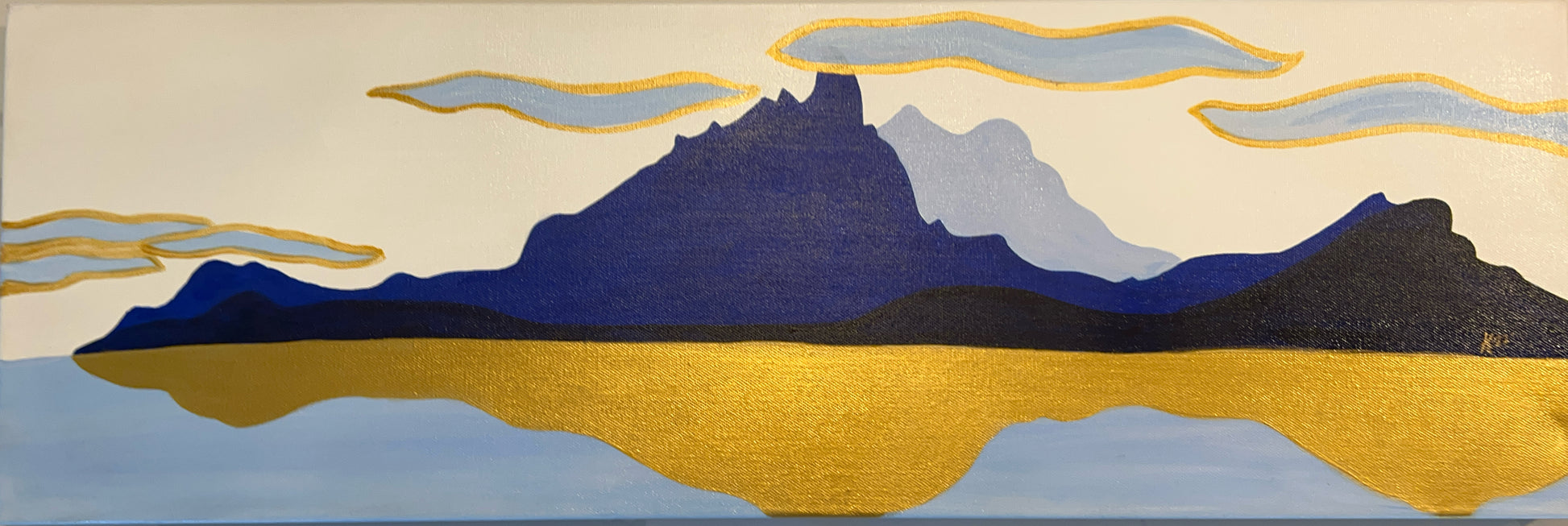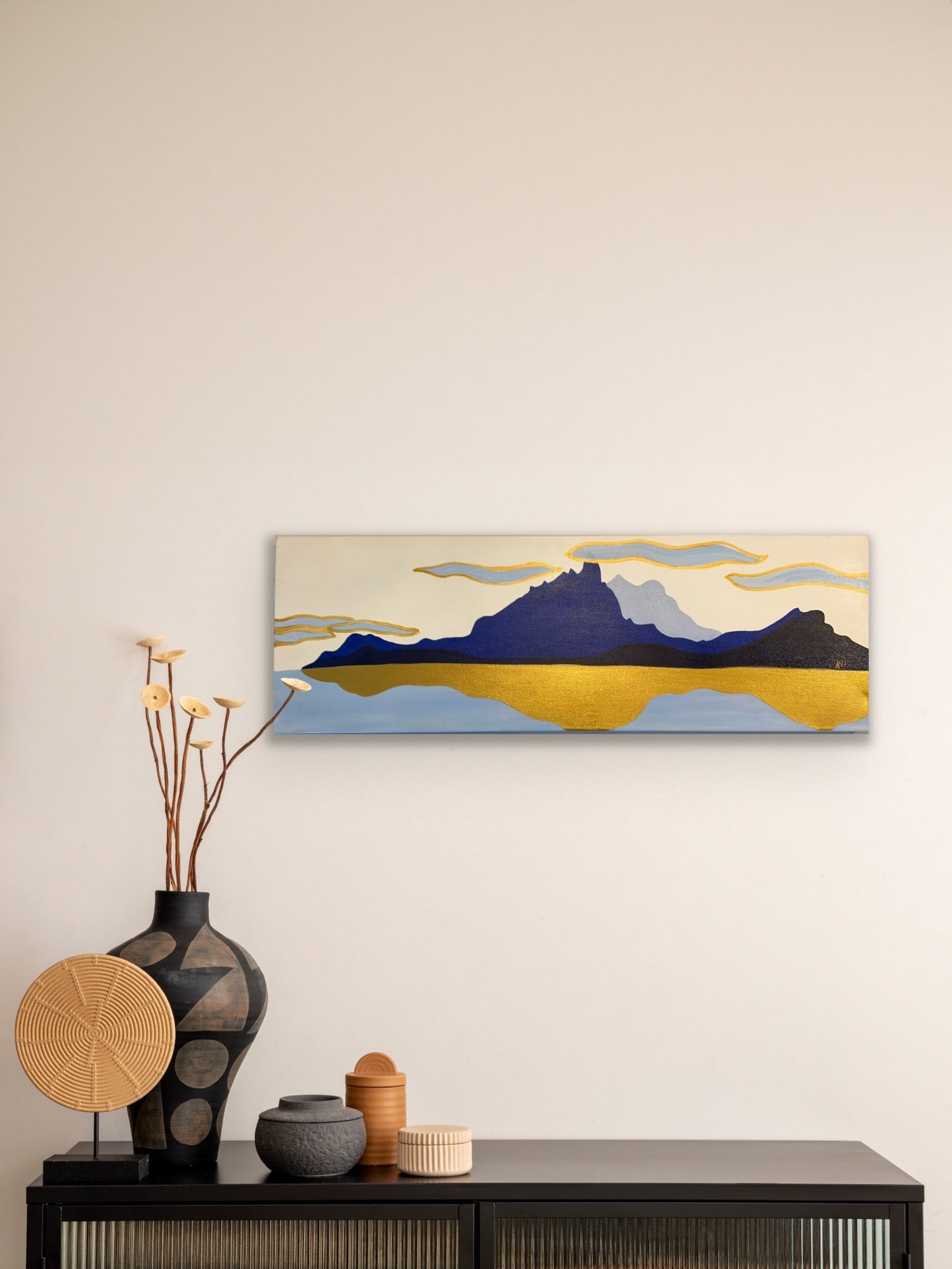 10x30x1.5” acrylic with metallic gold on landscape canvas.