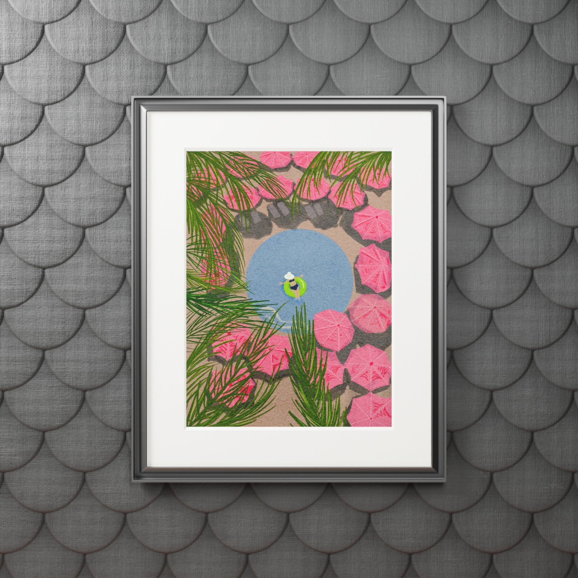 Chill'n 11x14" is printed on fine-art paper prints. Chill'n is a digital art piece. Equipped with a thick, 2mm (0.07") and mat paper frame in a natural white color, these prints can be hung as-is or inserted in a protective frame of your choice.