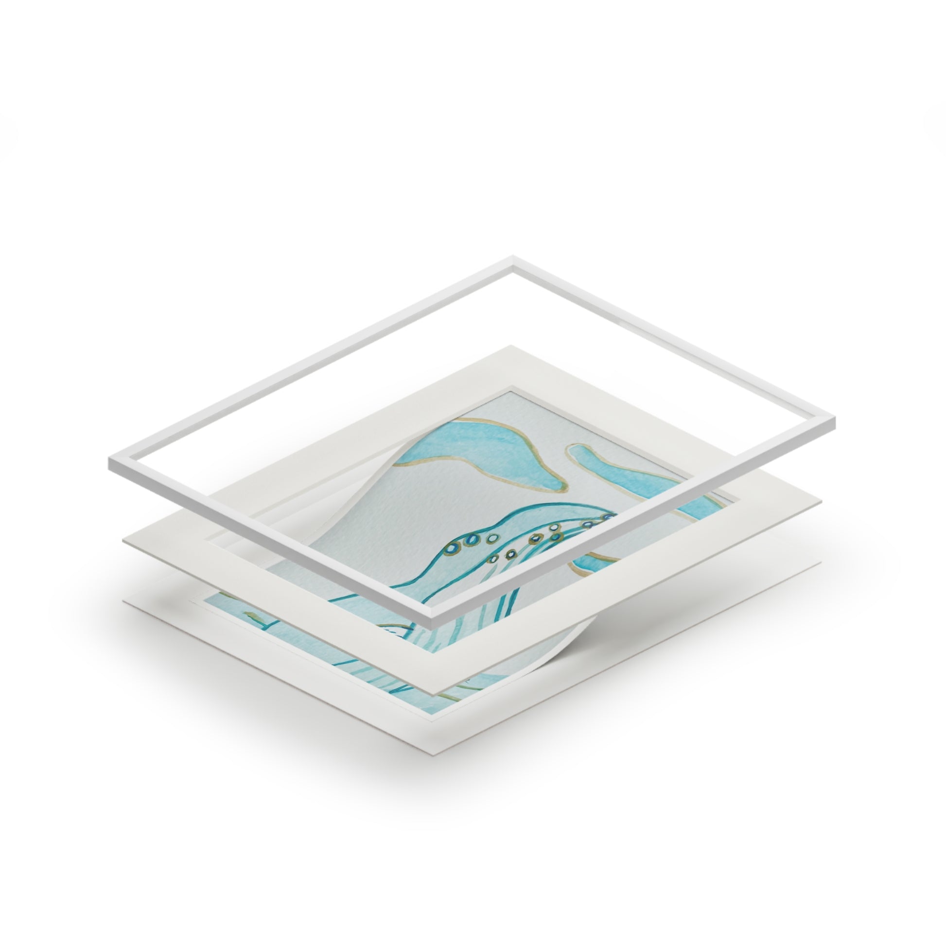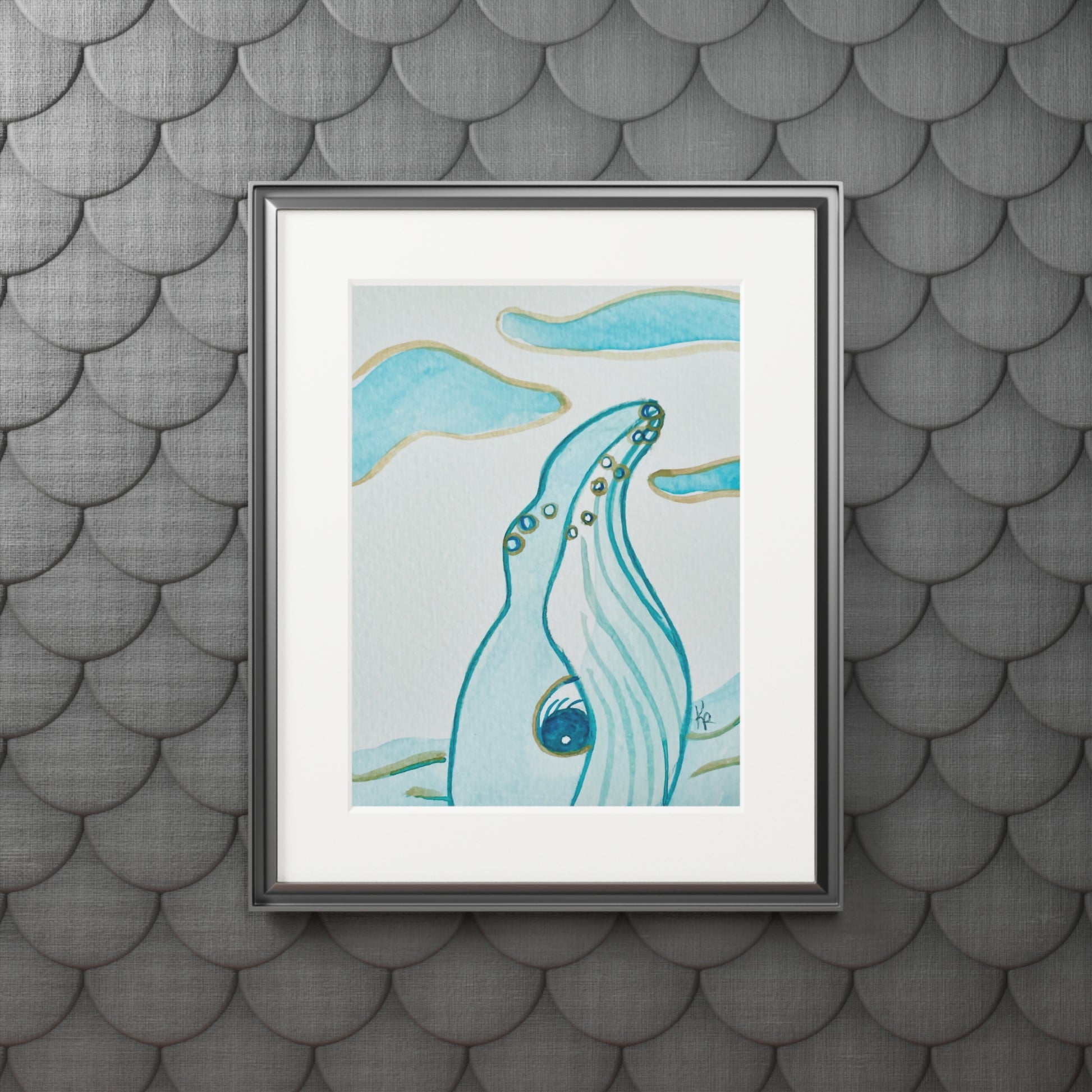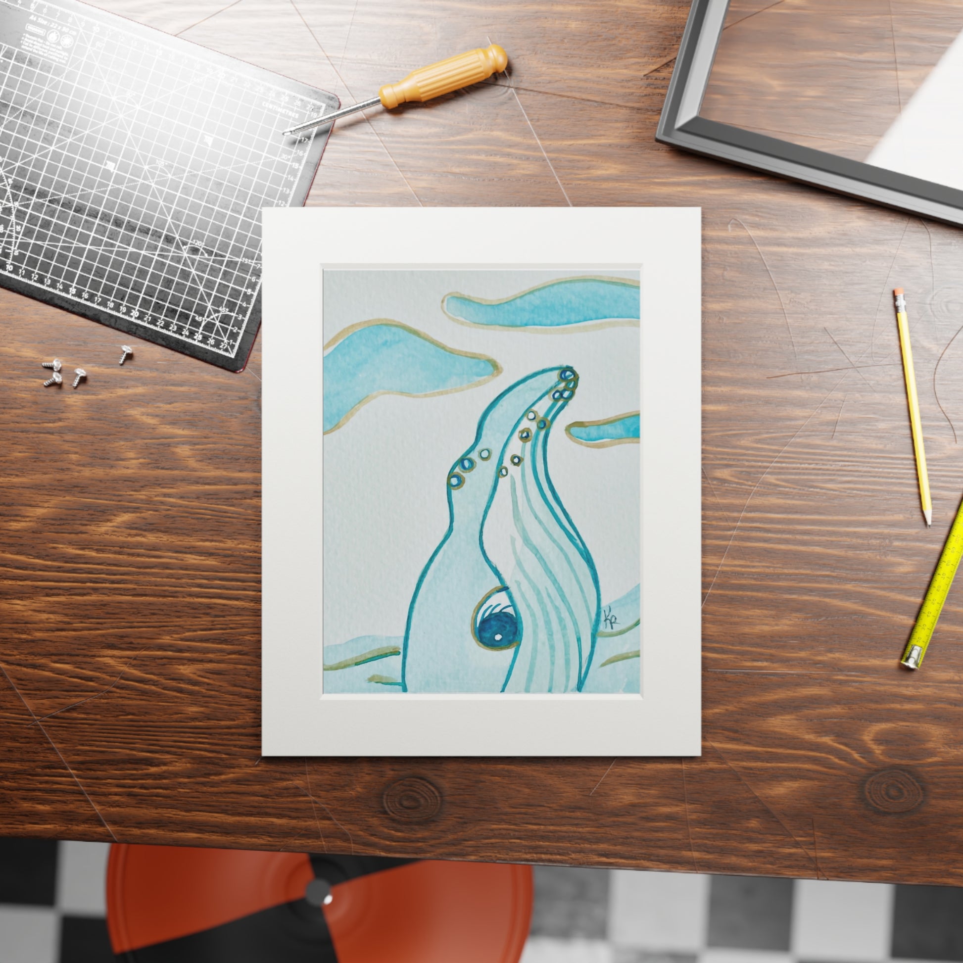 Bring serene ocean vibes into your space with this dreamy blue whale print, available on high-quality fine-art paper. Each print comes with a thick, 2mm natural white mat frame, ready to display as-is or slip into a protective frame of your choice.