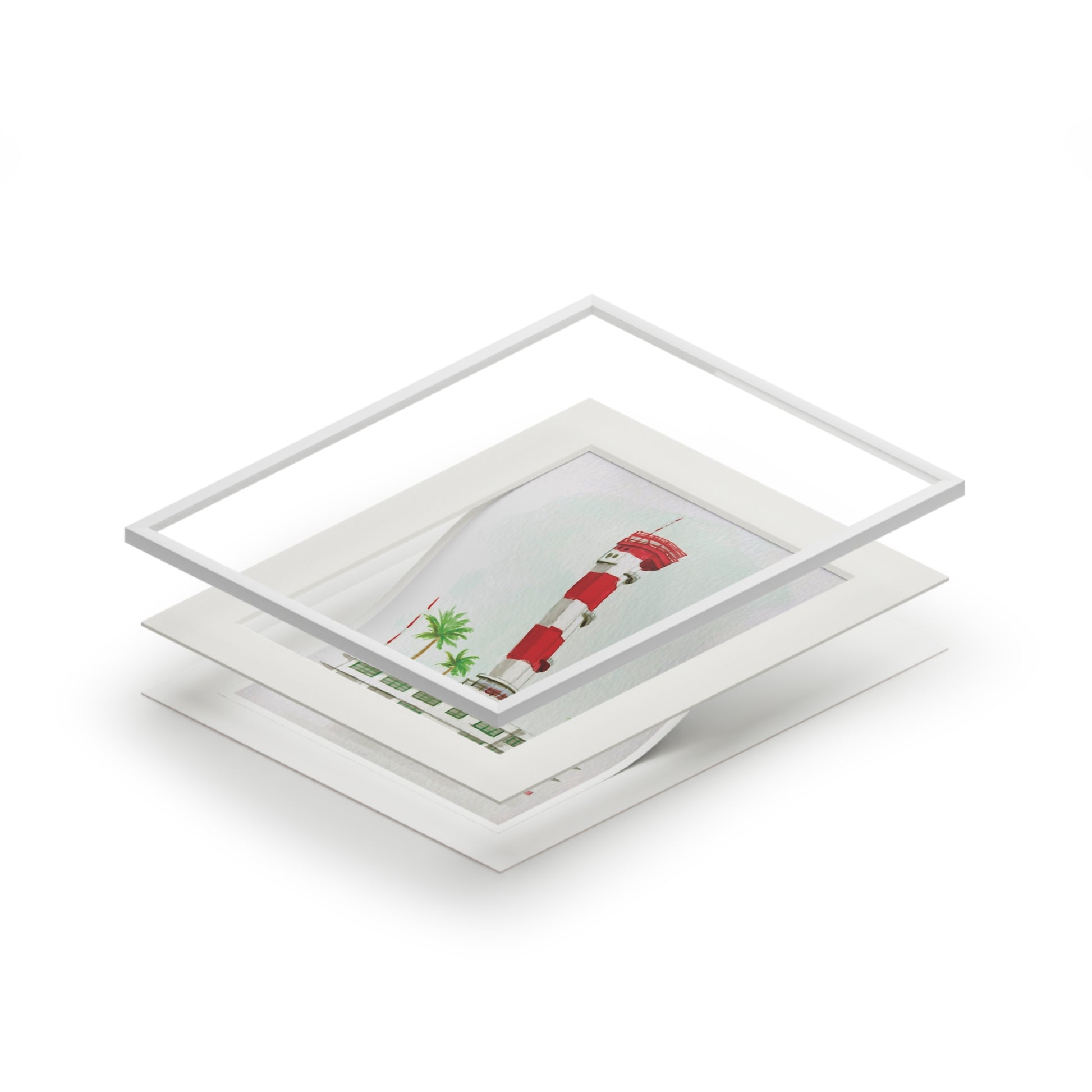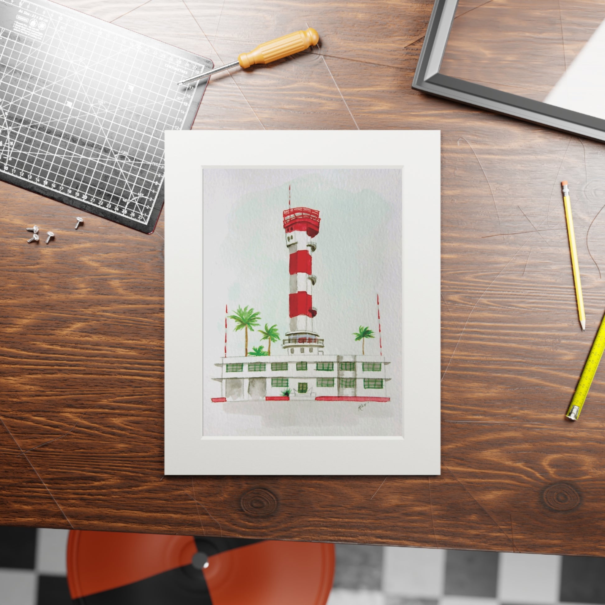 Ford Island Airtower, Pearl Harbor watercolor giclee is printed on fine-art paper prints 2mm (0.07") and mat paper frame in a natural white color, these prints can be hung as-is or inserted in a protective frame of your choice.