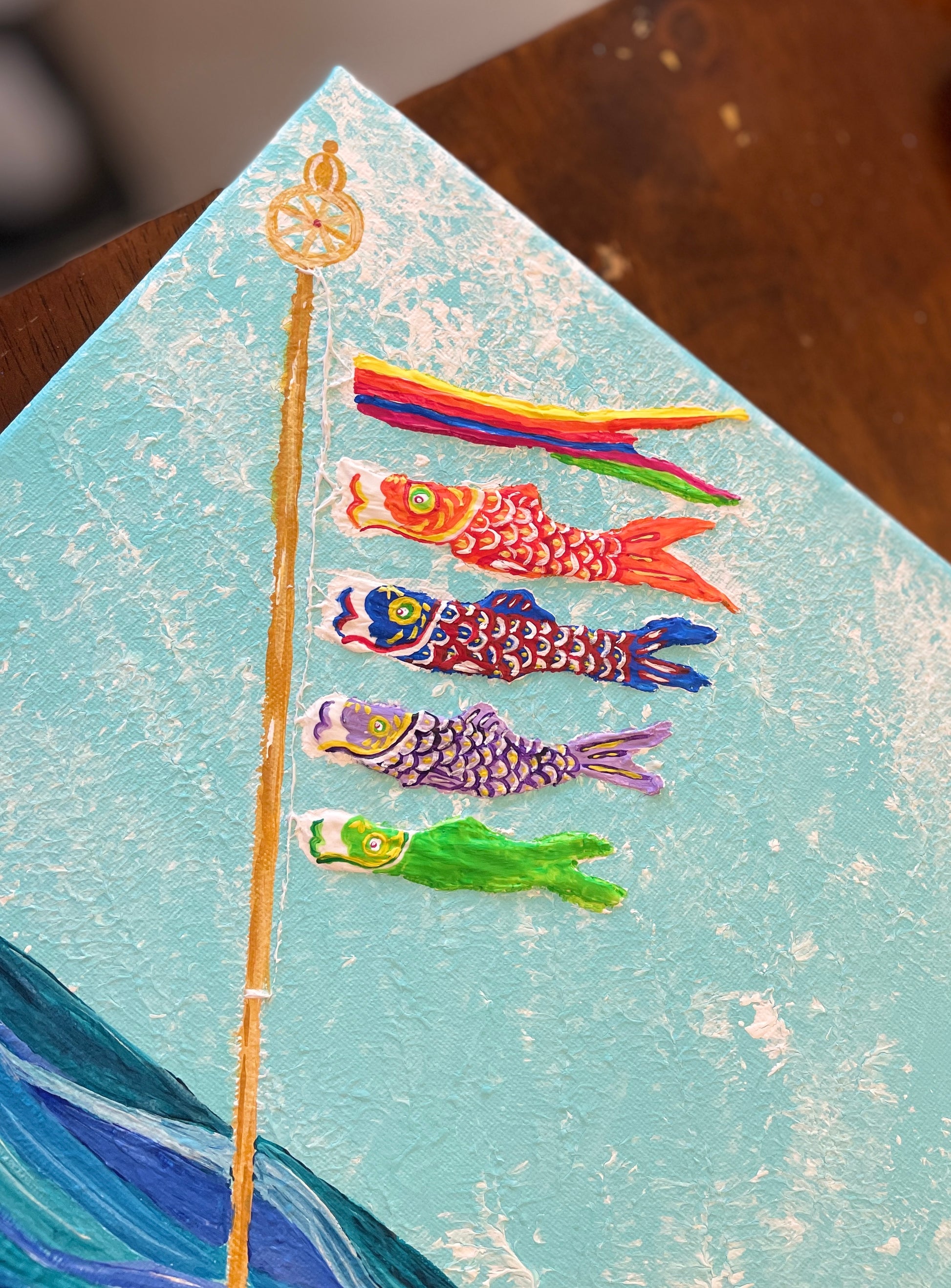 In Japanese tradition they dedicate a day to the children. Children are our bright futures and celebrated w these beautiful and vibrant carp wind socks called Kainobori. The design at the top of the pole could be a family crest type design, the top flag is of the family colors followed by large parent fish flags that are followed by the smaller children flags. The whole pole should represent the family. They are so beautiful it’s a wonderful tradition. ❤️🌺KR