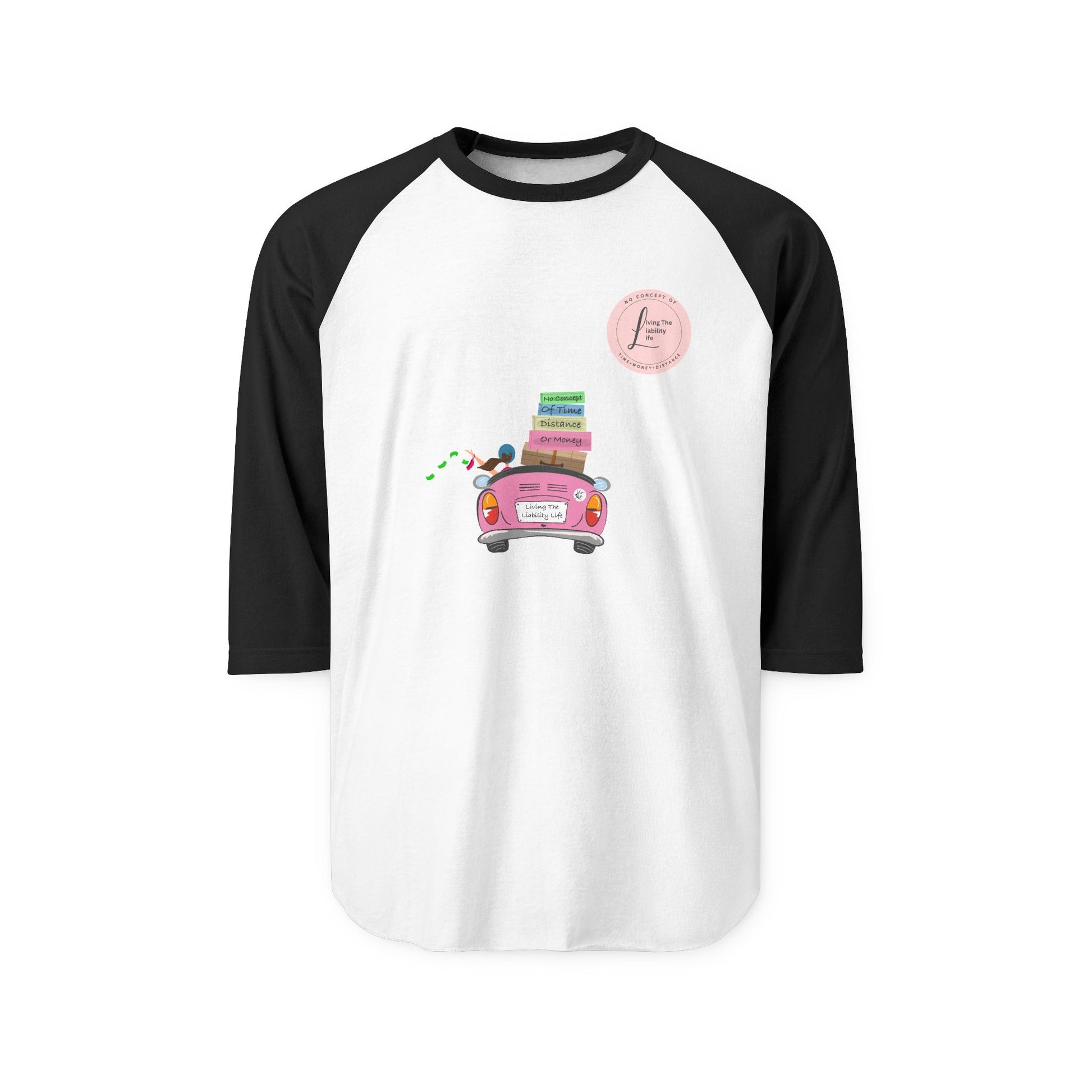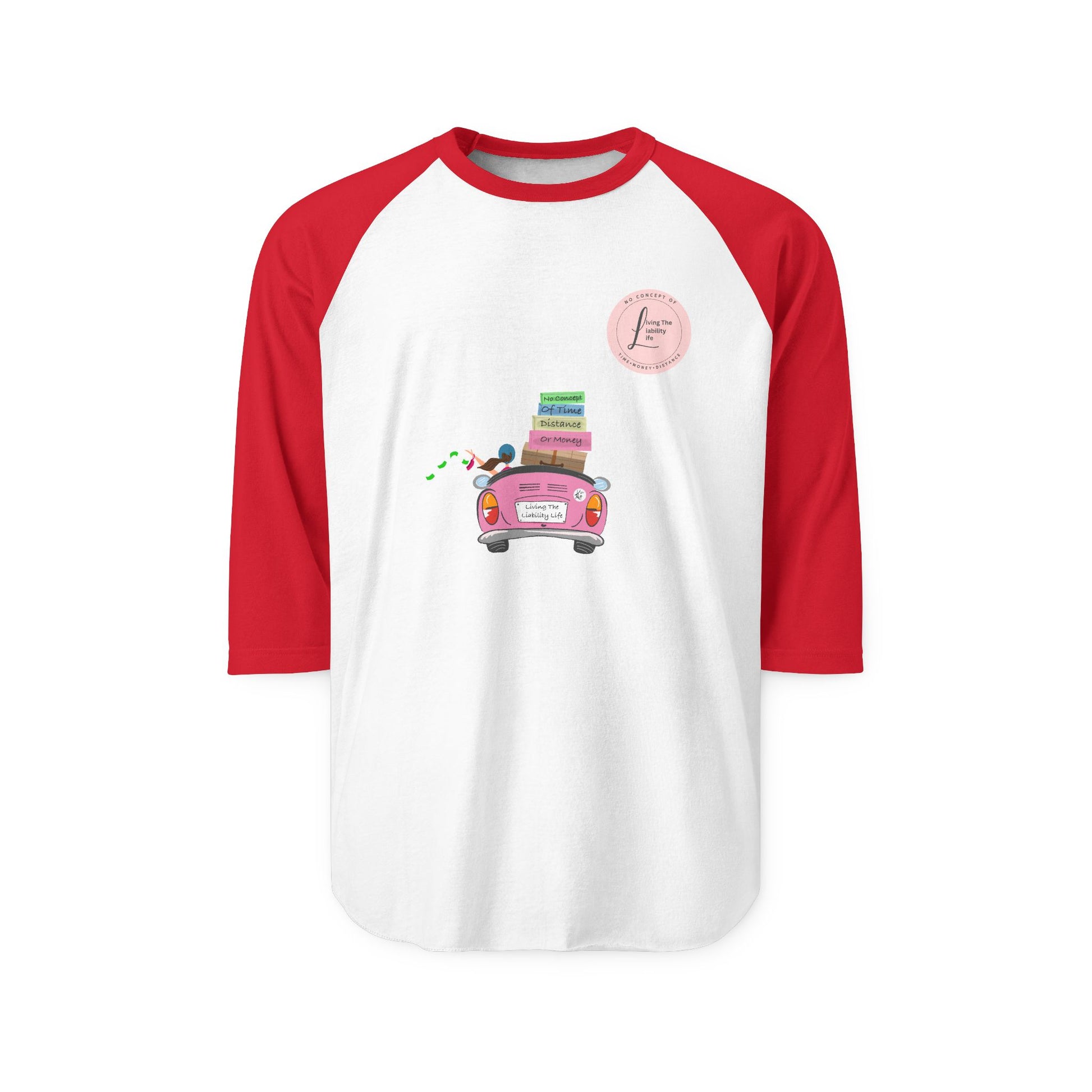 - Contrast 3/4 raglan sleeves and contoured seaming for relaxed shoulder fit
