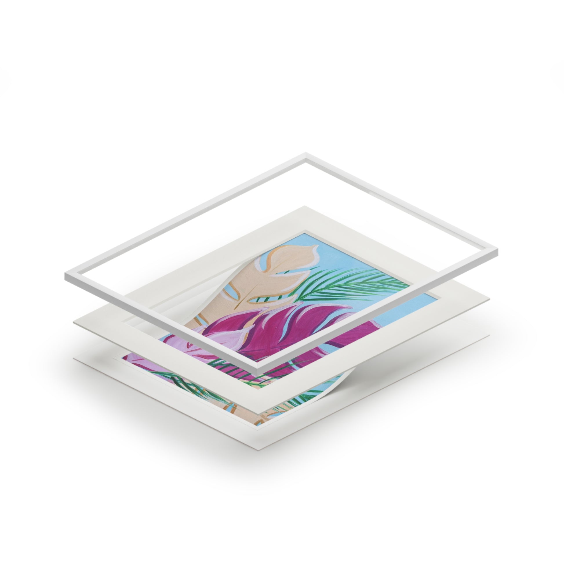 Summer Leaves 11x14" is printed on fine-art paper prints. Equipped with a thick, 2mm (0.07") and mat paper frame in a natural white color, these prints can be hung as-is or inserted in a protective frame of your choice.